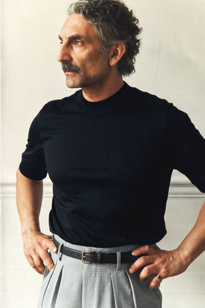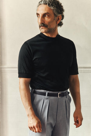 We’ve studied its fit carefully to bring out a man at his most handsome. With snug ribbing at the collar, sleeves, and hem, and a tailored drop over the bicep, it offers a vintage and elegant silhouette that sets it apart from the everyday tee.